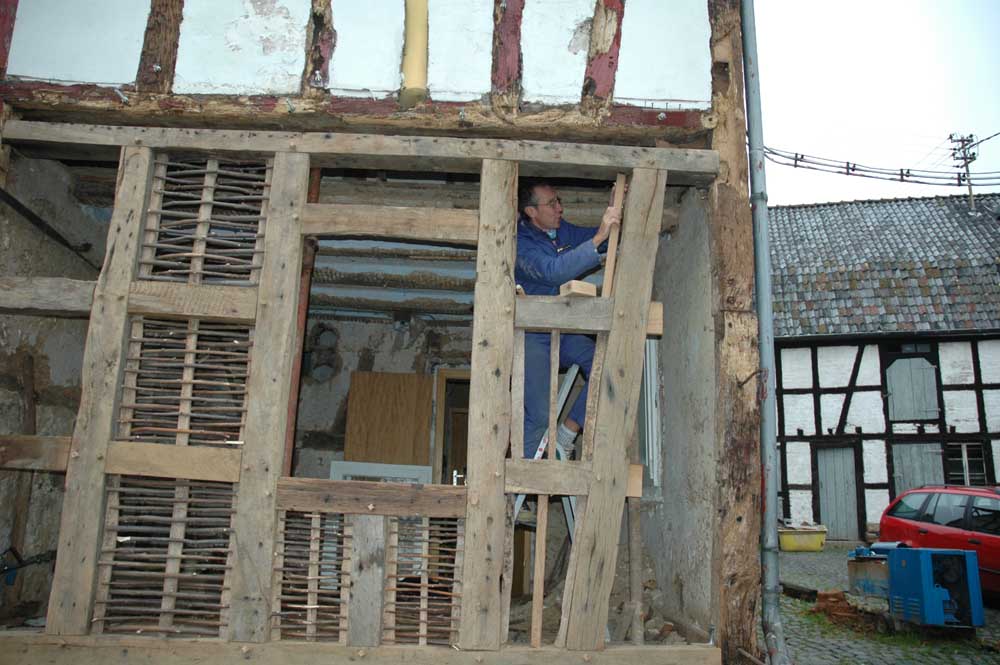 Der Lehm hat zudem noch die richtige Feuchtigkeit für die Eichenbalken, damit ist doch alles gesagt.